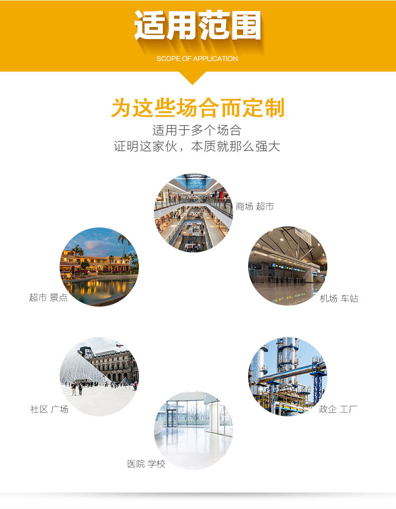 適用于:工廠車間、地下車庫、倉庫、醫院等大面積場所。